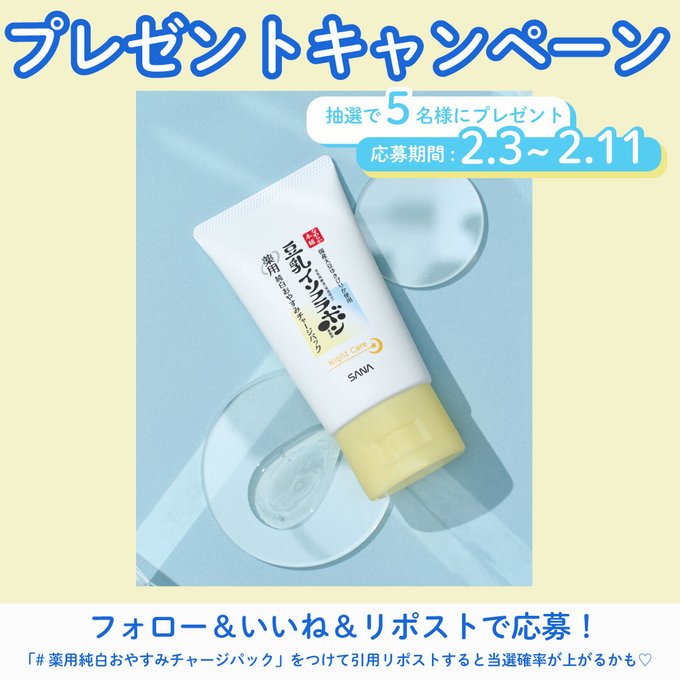 賞品:なめらか本舗 薬用純白おやすみチャージパック(10名様)