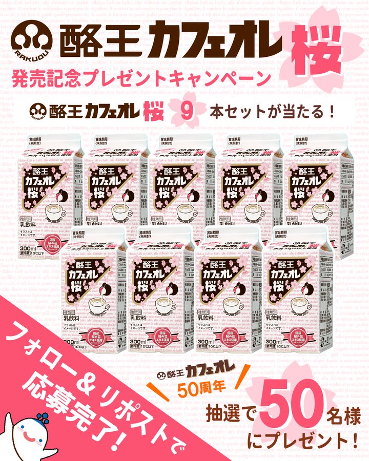賞品:酪王カフェオレ桜9本セット(50名様)