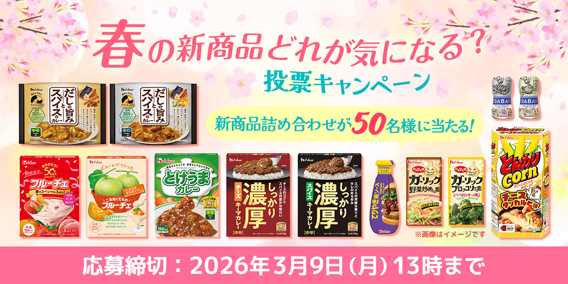 春の新商品詰め合わせを50名様にプレゼント 2026.02.09Come on House‐春の新商品どれが気になる?投票キャンペーン 賞品:春の新商品詰め合わせ(50名様) 締切:2026年3月9日(月)13時までご応募には会員登録/ログインが必要です。※詳細はキャンペーンページにてご確認ください。応募はこちらから