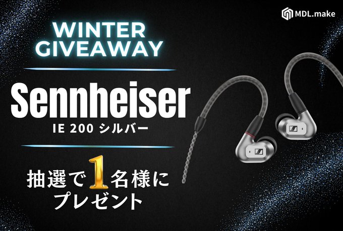 【X懸賞】Sennheiser IE 200 カナル型高性能イヤホンを1名様にプレゼント 2026.02.10MDL.make‐プレゼントキャンペーン 賞品:Sennheiser IE 200 カナル型高性能イヤホン(1名様) 締切:2026年2月12日(木)①@mdl_makeをフォロー ②投稿をリポスト&コメント※詳細はキャンペーンページにてご確認ください。応募はこちらから