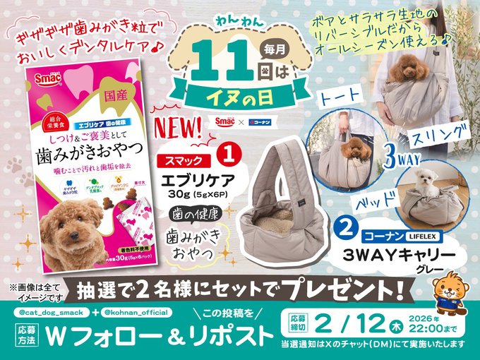 @cat_dog_smackと@kohnan_officialをフォロー&キャンペーン対象ポストをリポストしてご応募ください。