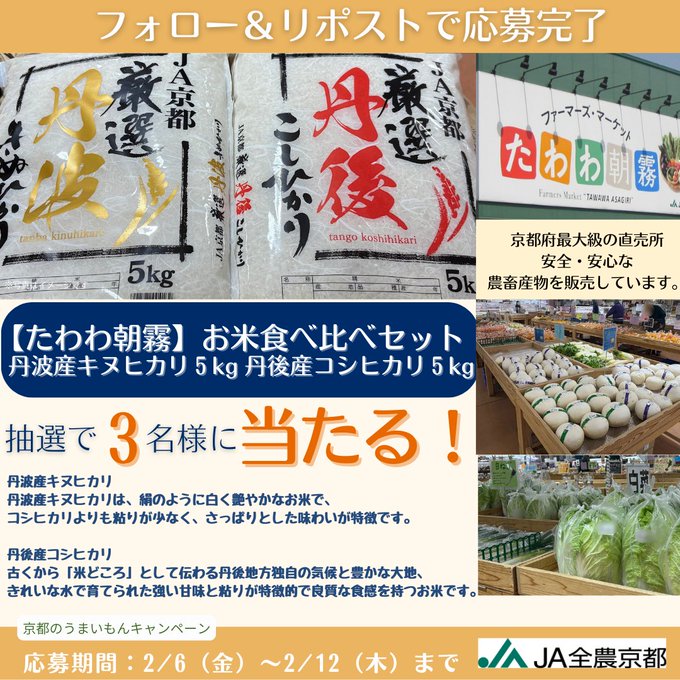 賞品:たわわ朝霧お米食べ比べセット(3名様)