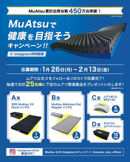 【X・Instagram懸賞】ムアツ関連賞品を合計25名様にプレゼント