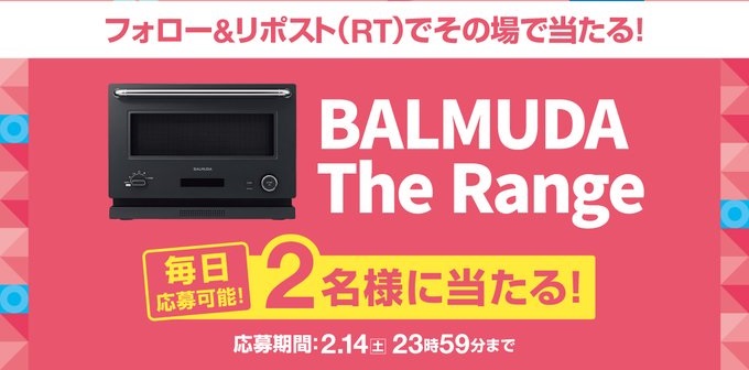 賞品:バルミューダ BALMUDA The Range(2名様)