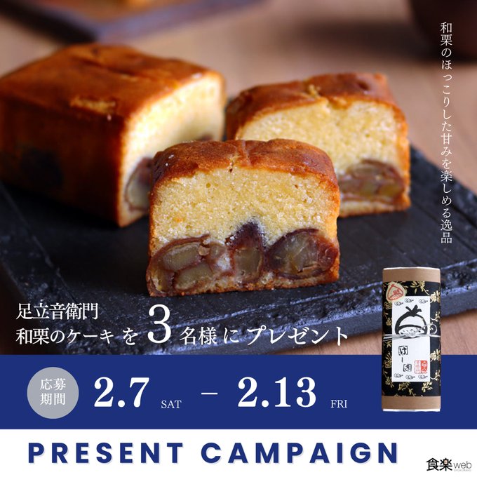 賞品:足立音衛門 和栗のケーキ(3名様)