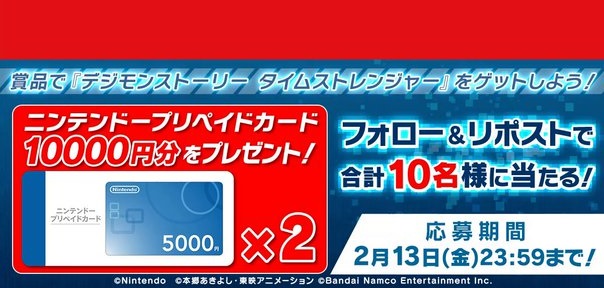 賞品:ニンテンドープリペイドカード1万円分(10名様)