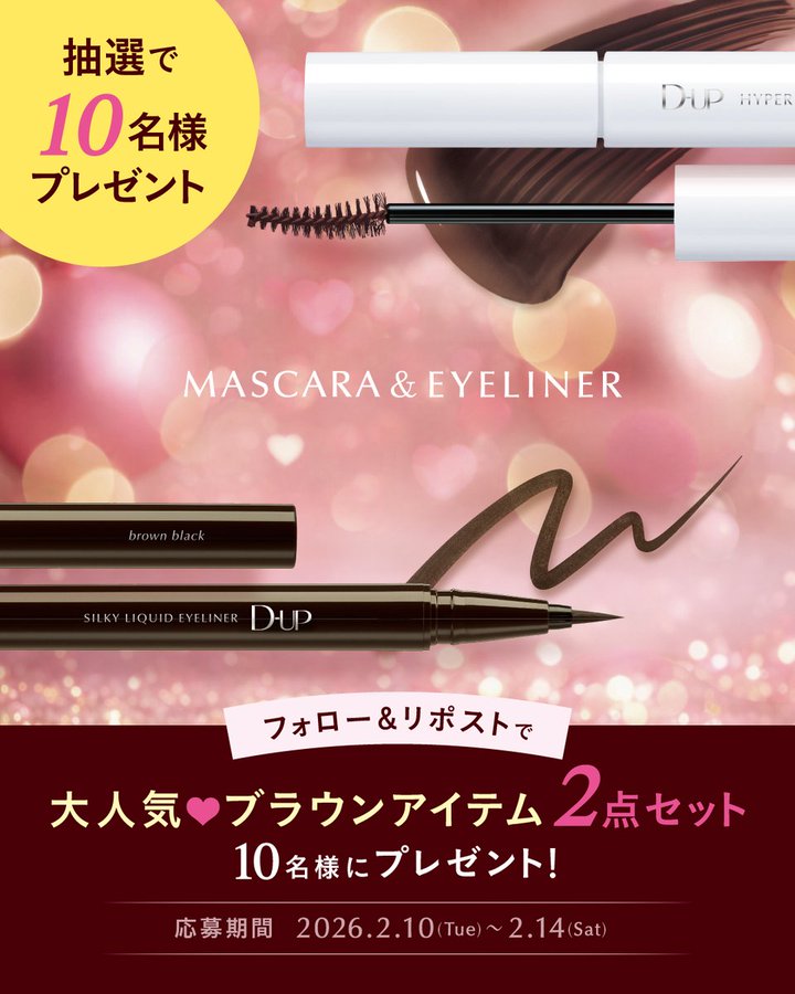 【X懸賞】深みブラウン2点セットを10名様にプレゼント 2026.02.11D-UP‐プレゼントキャンペーン 賞品:深みブラウン2点セット(10名様) 締切:2026年2月14日(土)① @dupbeautyをフォロー&リポスト ② #ディーアップでチョコレートメイク とコメント※詳細はキャンペーンページにてご確認ください。応募はこちらから