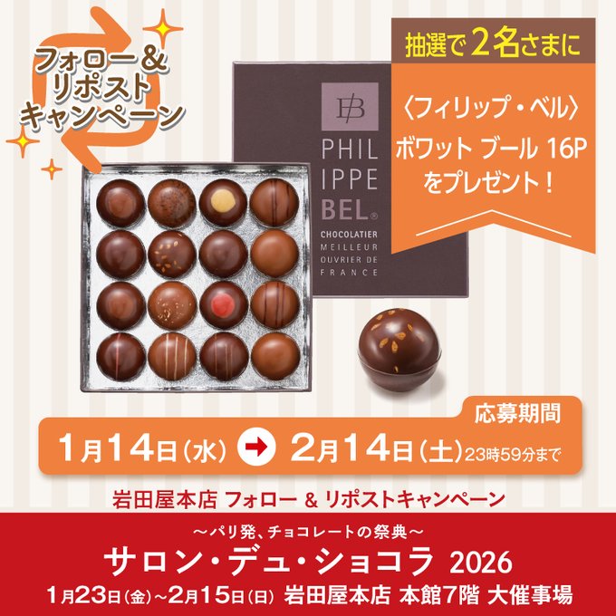「サロン・デュ・ショコラ2026」岩田屋本店公式X・岩田屋本店公式‐プレゼントキャンペーン