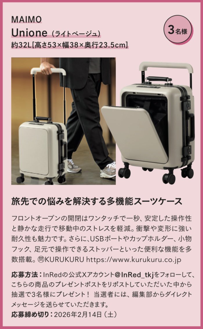 賞品:MAIMO スーツケース Unione(3名様)
