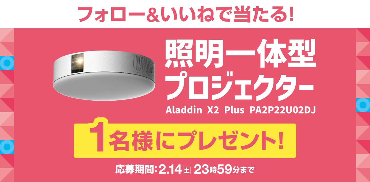 賞品:照明一体型プロジェクター「Aladdin X2 Plus PA2P22U02DJ」(1名様)