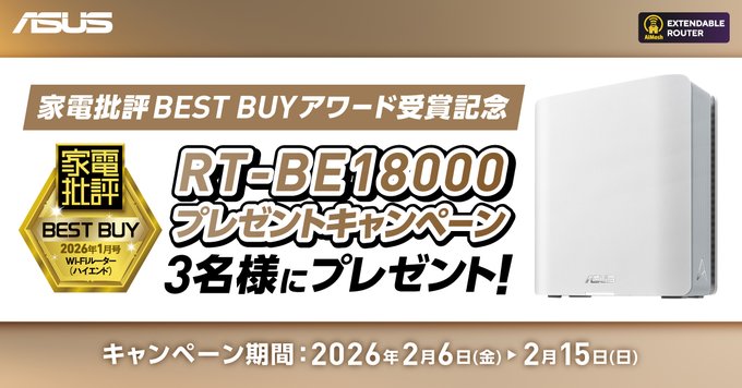 【X懸賞】ASUS Wi-Fiルーター RT-BE18000を3名様にプレゼント