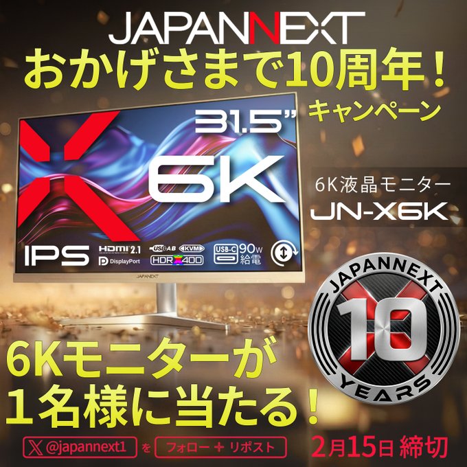 賞品:6Kモニター「JN-X6K」(1名様)