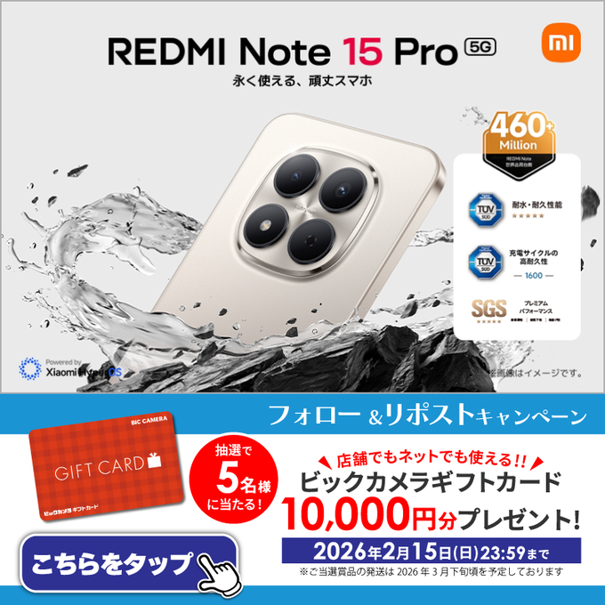 賞品:ビックカメラギフトカード10,000円分(5名様)