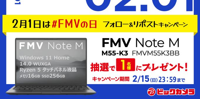 【X懸賞】14.0型モバイルノート FMV Note Mを1名様にプレゼント