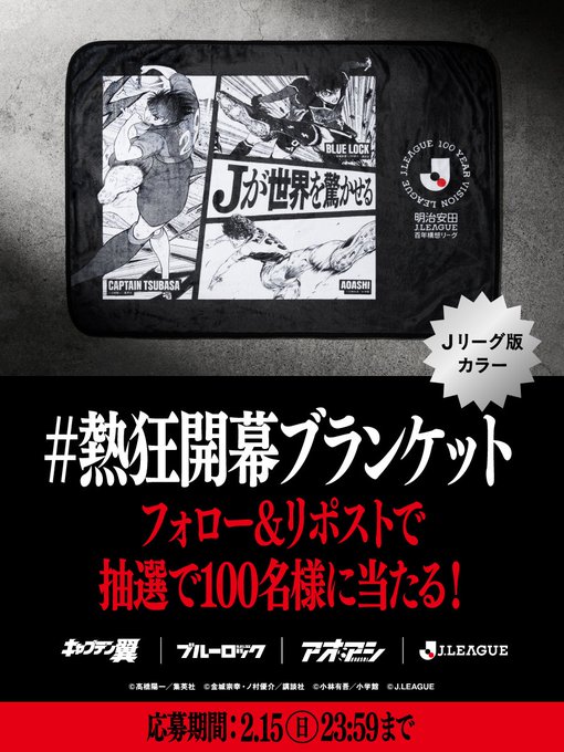 賞品:Jリーグ版カラーの熱狂開幕ブランケット(100名様)