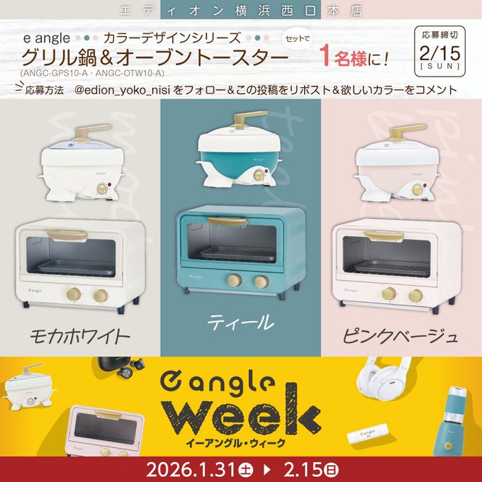 賞品:e angle カラーデザインシリーズ グリル鍋&オーブントースター(1名様)