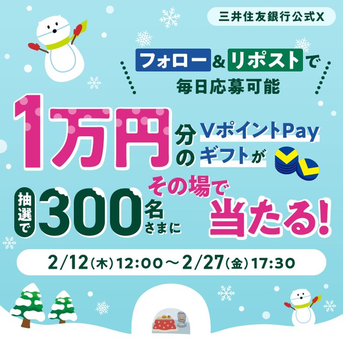 三井住友銀行公式Xアカウントをフォロー&キャンペーン対象ポストをリポストしてご応募ください。