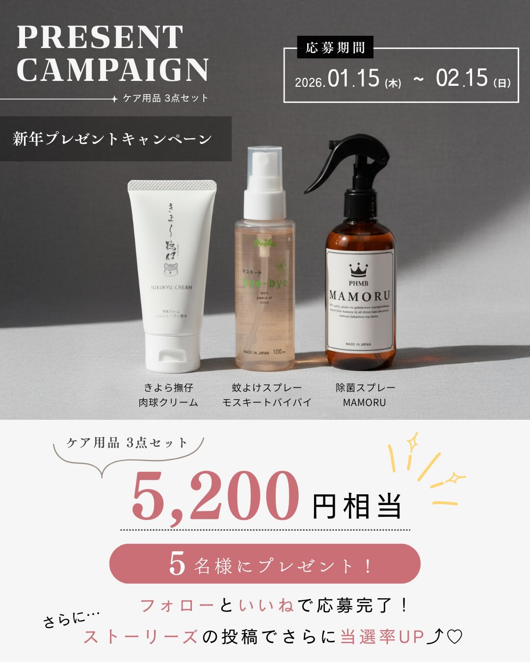 賞品:ケア用品3点セット(5名様)