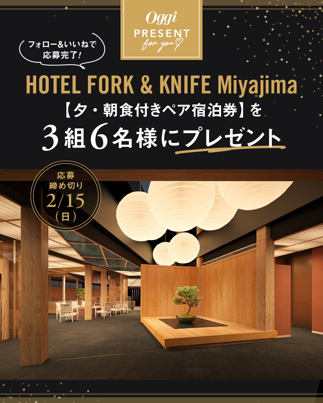【Instagram懸賞】「HOTEL FORK & KNIFE Miyajima」の宿泊券を3組6名様にプレゼント