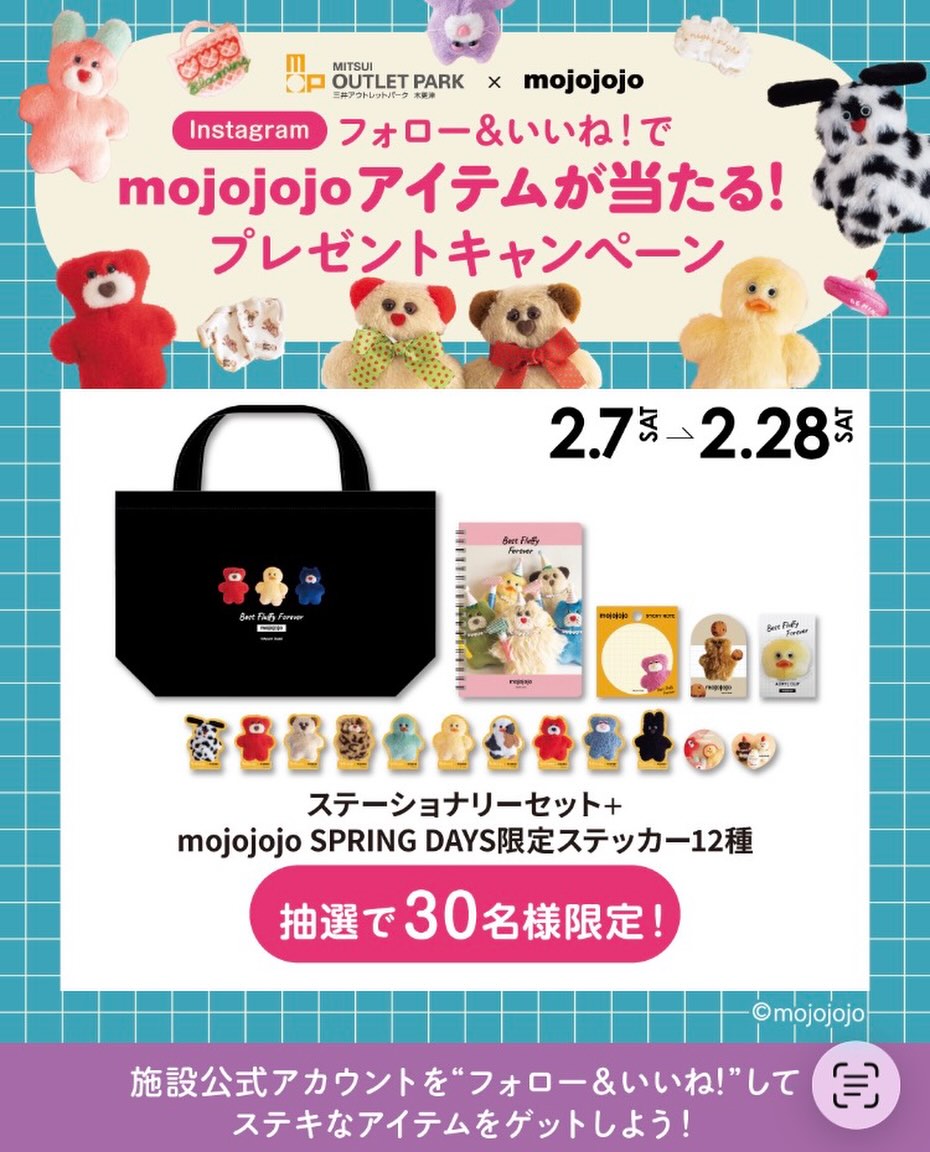 【Instagram懸賞】ステーショナリーセット+mojojojo SPRING DAYS限定ステッカー12種を30名様にプレゼント