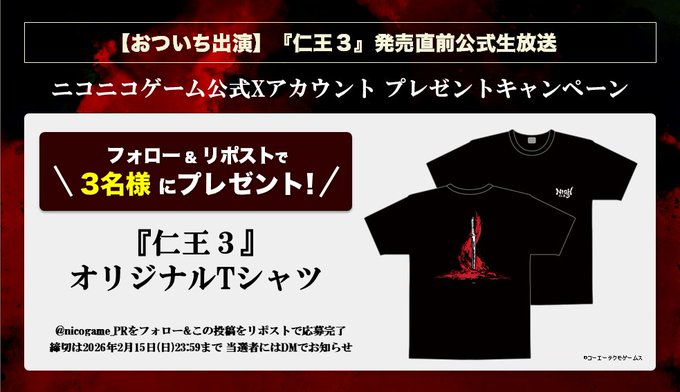賞品:『仁王3』オリジナルTシャツ(3名様)