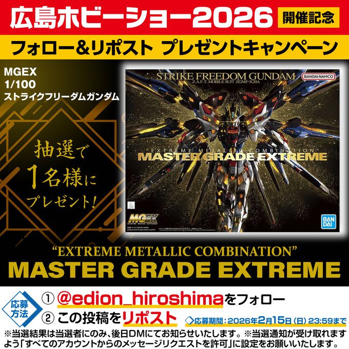 賞品:MGEX 1/100 ストライクフリーダムガンダム(1名様)