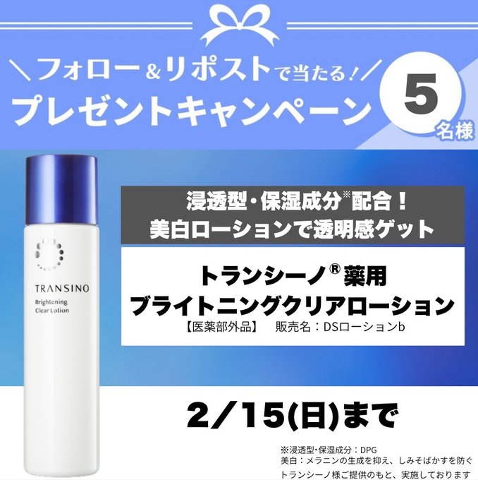 賞品:トランシーノ薬用ブライトニングクリアローション(5名様)