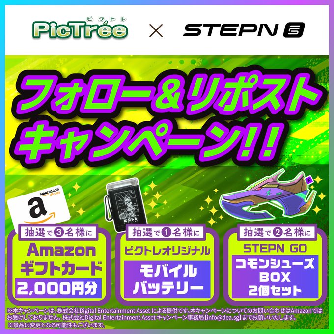 @Stepnofficial @STEPNJPA @pictree_dea をフォロー&キャンペーン対象ポストをリポストしてご応募ください。