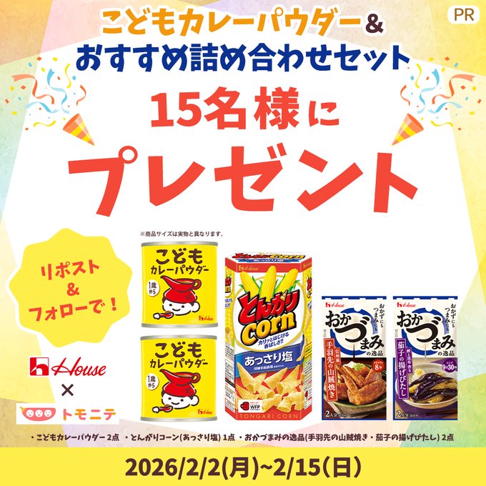 賞品:ハウス食品 こどもカレーパウダー+詰め合わせ5点セット(15名様)