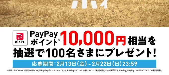 賞品:PayPayポイント10,000円相当(100名様)