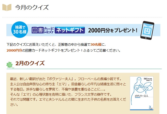 図書カードNEXT‐今月のクイズ