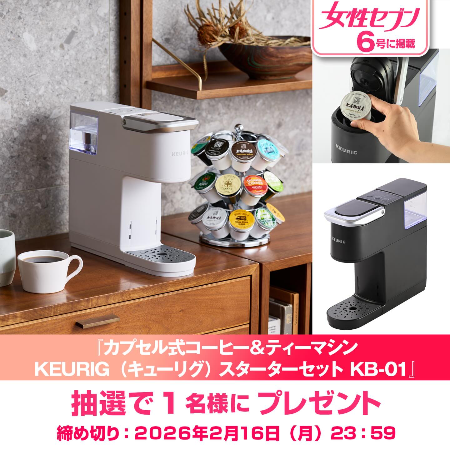 賞品:カプセル式コーヒー&ティーマシン KEURIG(キューリグ) スターターセット KB-01(1名様)