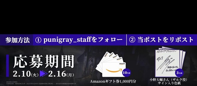 賞品:小野大輔さんサイン入り色紙、Amazonギフト券1,000円分(合計13名様)