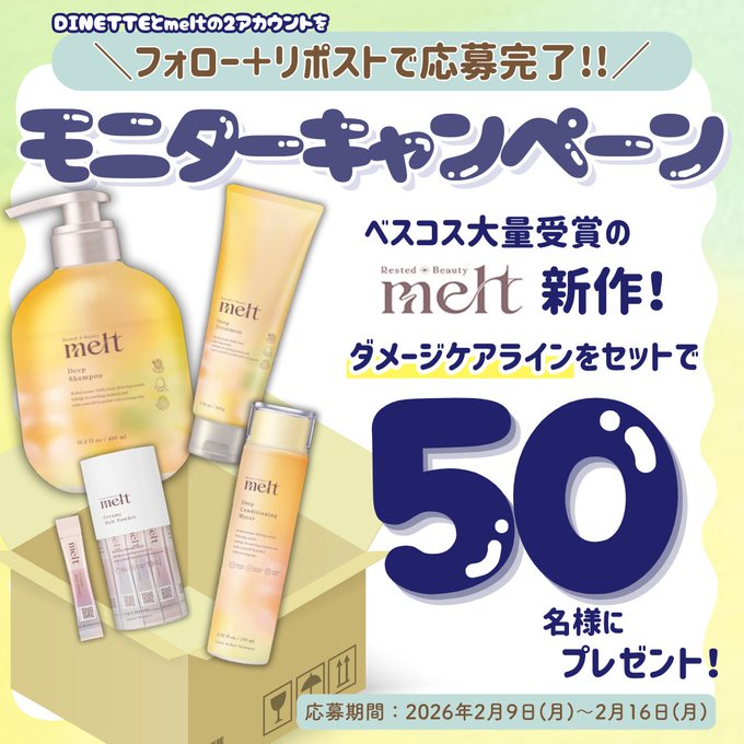 @dinette_inc @meltbeauty_jp をフォロー&キャンペーン対象ポストをリポストしてご応募ください。