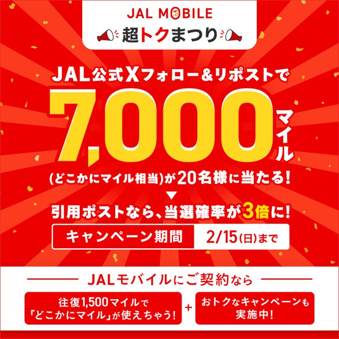 賞品:7,000マイル(どこかにマイル相当)(20名様)