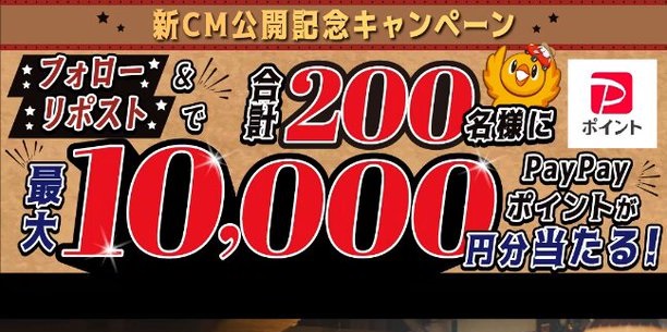 賞品:PayPayポイント最大10,000円分(200名様)