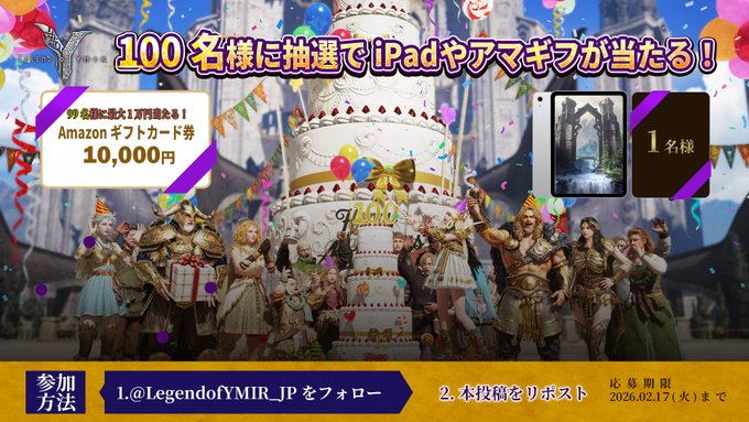 Legend of YMIR グローバル‐サービス100日記念 抽選イベント