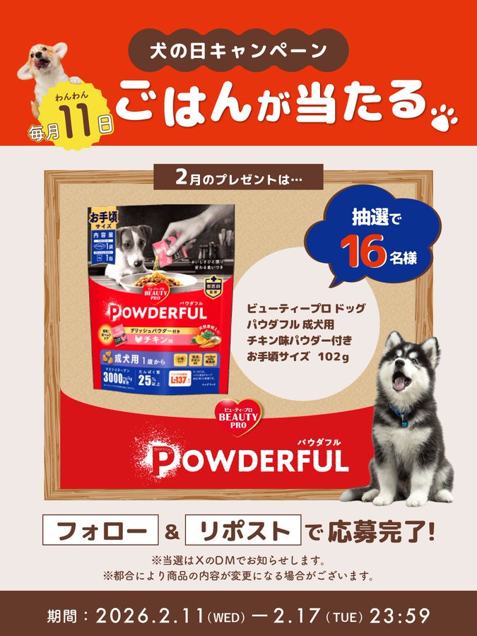 賞品:パウダフル チキン味パウダー付き(16名様)