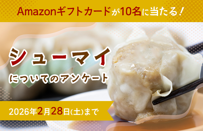 Amazonギフトカード1,000円分を10名様にプレゼント 2026.02.15LA VIDAコミュニティ‐「シューマイ」についてのアンケート 賞品:Amazonギフトカード1,000円分(10名様) 締切:2026年2月28日(土)「シューマイ」に対する使い方や好きな点などについて聞かせてください。※詳細はキャンペーンページにてご確認ください。応募はこちらから