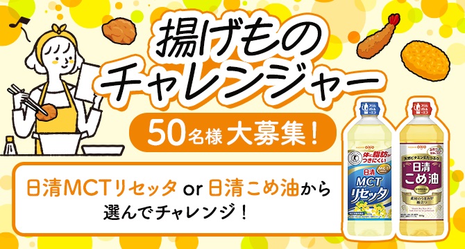 賞品:日清MCTリセッタ or 日清こめ油(50名様)