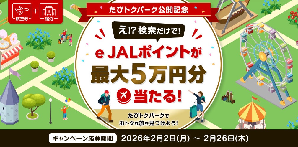 JAL‐たびトクパーク公開記念 え!?検索だけで!e JALポイントプレゼントキャンペーン