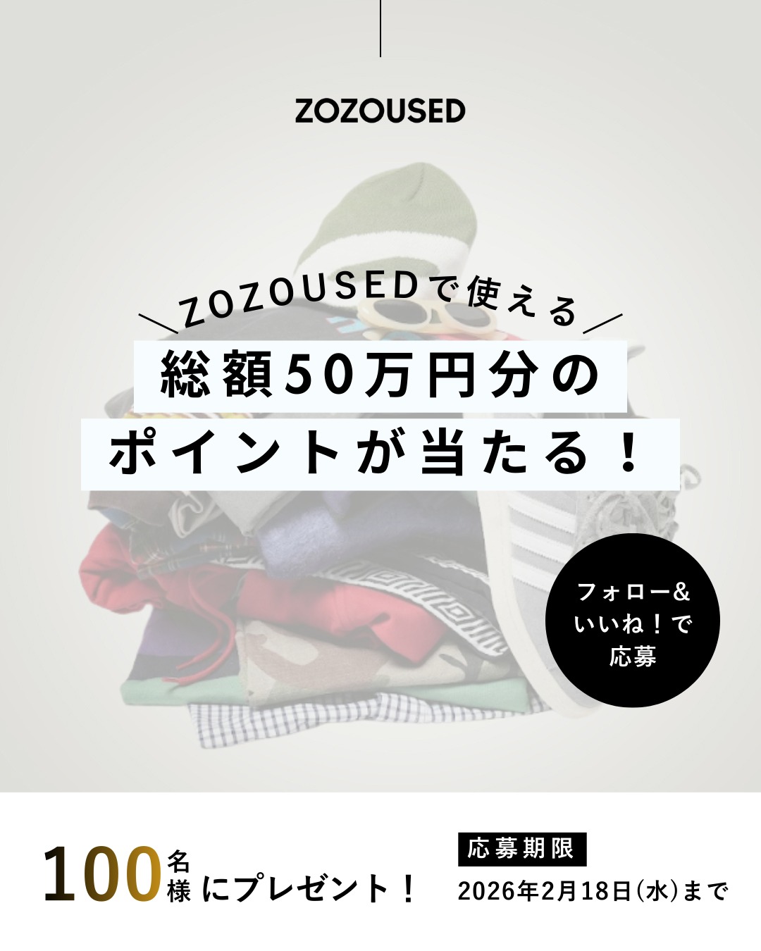 賞品:ZOZOUSEDで使える5,000円分クーポン(100名様)
