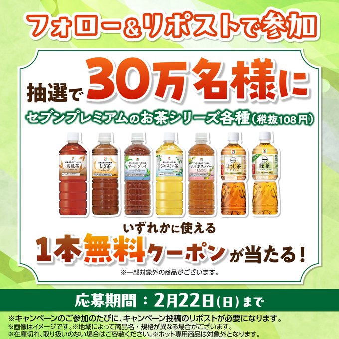 セブンプレミアム お茶無料クーポン フォロー&リポストキャンペーン