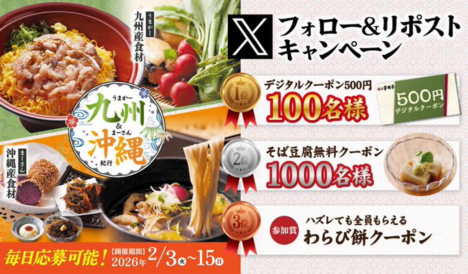 2等:そば豆腐無料クーポン(1,000名様)