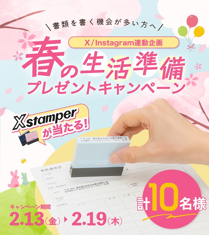 【X・Instagram懸賞】Xstamper 一行印 0860号を10名様にプレゼント 2026.02.17シヤチハタ株式会社‐春の生活準備プレゼントキャンペーン 賞品:Xstamper 一行印 0860号(10名様) 締切:2026年2月19日(木)公式X(Twitter)アカウントをフォロー&キャンペーン対象ポストをリポストしてご応募ください。Instagramからも応募できます。※詳細はキャンペーンページにてご確認ください。応募はこちらから