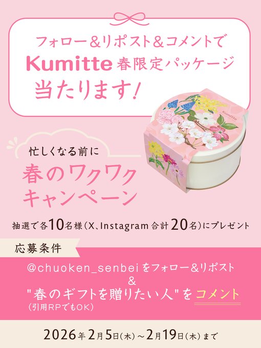 賞品:春季限定パッケージ Kumitte(クミッテ)21個入(10名様)