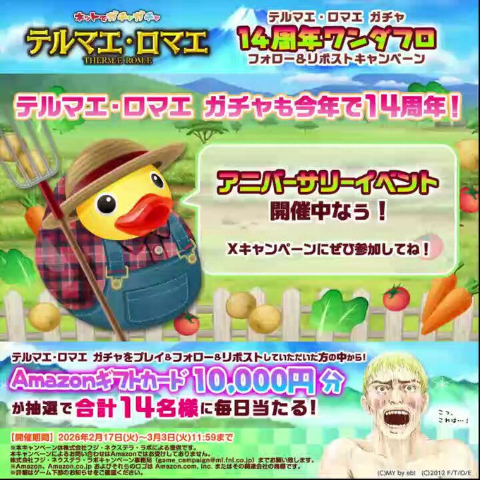 テルマエ・ロマエ ガチャ 14周年ワンダフロ キャンペーン