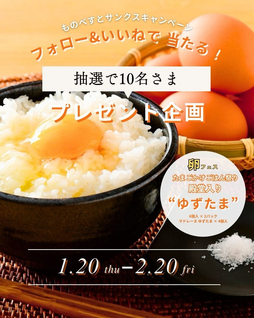 【Instagram懸賞】ゆずたまギフトセットを10名様にプレゼント 2026.02.18ものべすと‐フォロー&いいねキャンペーン 賞品:ゆずたまギフトセット(10名様) 締切:2026年2月20日(金)応募方法: 1. 公式Instagramアカウントをフォロー 2. 対象の投稿に「いいね!」※詳細はキャンペーンページにてご確認ください。応募はこちらから