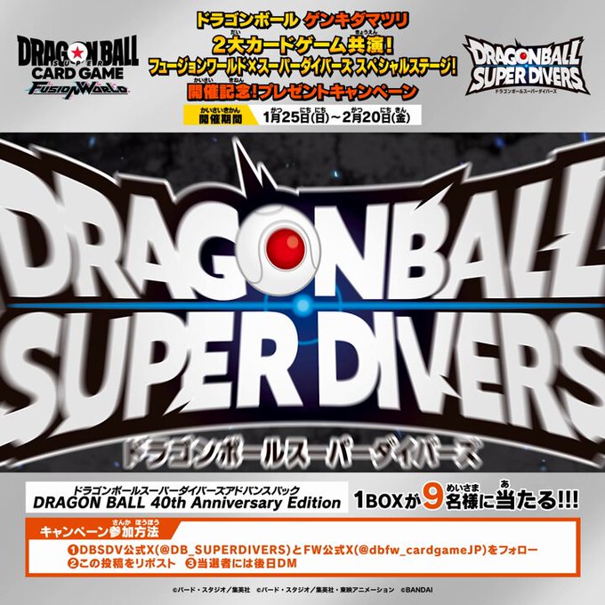 @DB_SUPERDIVERS @dbfw_cardgameJP をフォロー&キャンペーン対象ポストをリポストしてご応募ください。