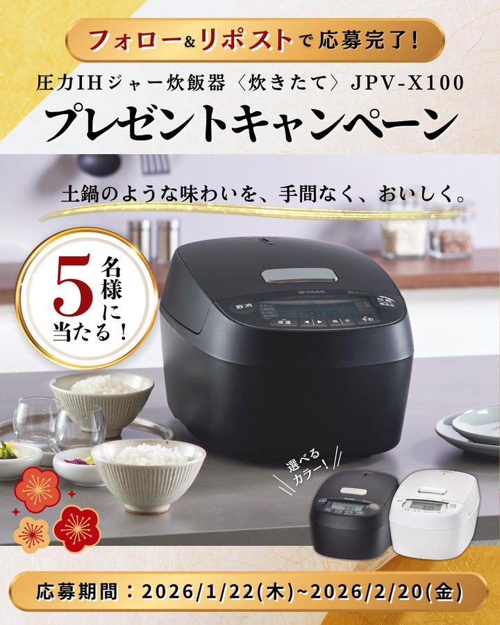 賞品:タイガー圧力IHジャー炊飯器〈炊きたて〉JPV-X100(5名様)